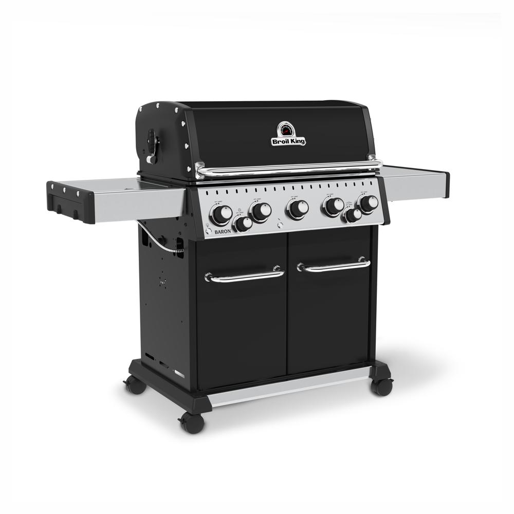 5 Dual Tube Edelstahl Stabbrenner 15,5 kW, Seitenkochplatte 2,7 kW, Spießbratenbrenner 4,4 kW, 5-tlg. Flav-R-Cast matt-emaillierte Gussroste, Grillfläche 80 x 44 cm, Edelstahl Ablagerost 78 x 18 cm, Edelstahl Flav-R-Wave Verdampfungssystem, Linear Flow Gasdüsen mit 180° Sensi-Touch Steuerung, Deluxe Acc-Temp Thermometer, Sure Lite Elektrozündung, auch am Spießbratenbrenner, Doppelwandiger schwarz-emaillierter Deckelmit Aluminiumguss Seitenteilen, Therma-Cast Aluminiumgussgehäuse, Edelstahl Deckelgriff, Edelstahl Bedienteil inkl. Kontrollknopf-Beleuchtung, Edelstahl Seitenablagen mit Zubehörhaken, klappbar; Cabinetunterwagen mit Gasflaschenintegration für 11 kg Gasflasche, 2 schwarze Türen mit Edelstahl Griffen, 4 feststellbare Lenkrollen, Inkl. Drehspießset und Elektromotor, Inkl. Schlauch und Druckminderer.