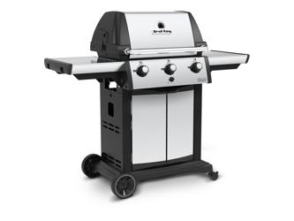 3 Dual Tube Edelstahl Stabbrenner 11,4 kW, 2-tlg. Flav-R-Cast matt-emaillierte Gussroste, Grillfläche 65 x 38 cm, Emaillierter Ablagerost 60 x 25,5 cm (schwenkbar), Edelstahl Flav-R-Wave Verdampfungssystem, Edelstahl Flav-R-Zone zur Unterteilung der Garkammern, Linear Flow Gasdüsen, Deluxe Accu-temp Thermometer, Sure Lite Elektrozündung, Uni-Cas Aluminiumgussgehäuse mit Edelstahl Deckel-Inlay, Edelstahl Deckelgriff, Edelstahl Bedienteil, Edelstahl Seitenablagen mit Zubehörhaken, klappbar; Cabinetunterwagen mit Gasflaschenintegration für 11 kg Gasflasche, 2 Edelstahltüren, Zwei Räder, zwei feststellbare Lenkrollen; inkl. Schlauch und Druckminderer.
