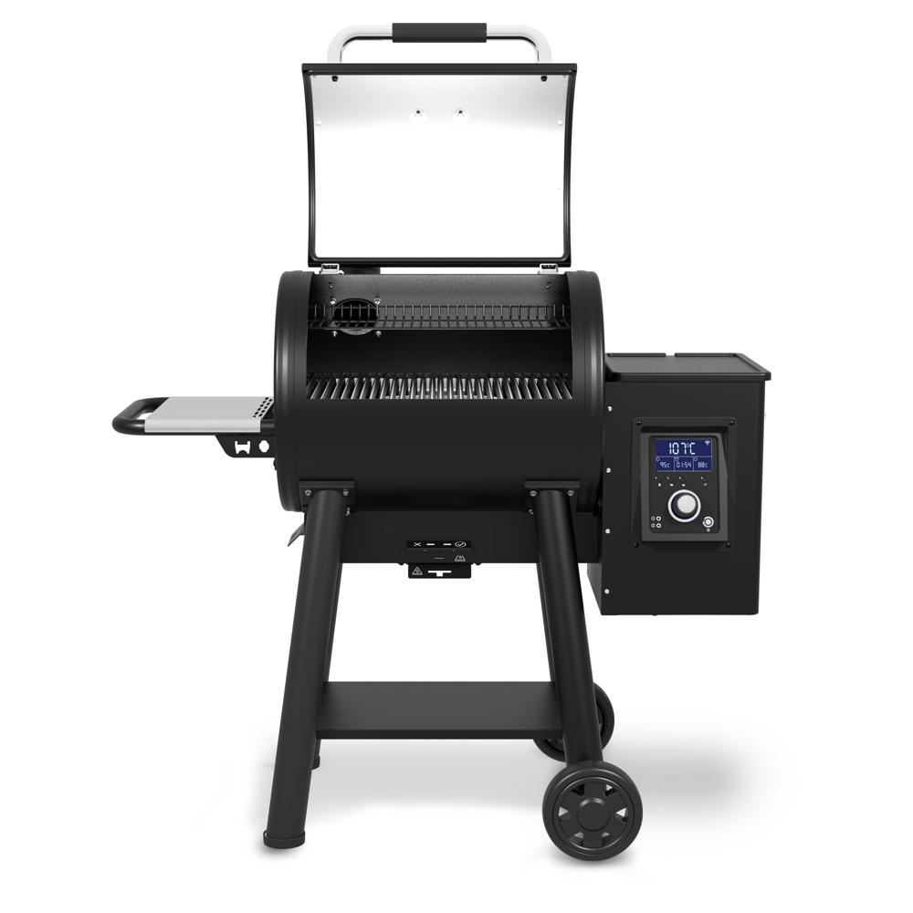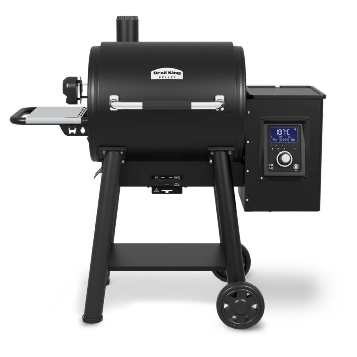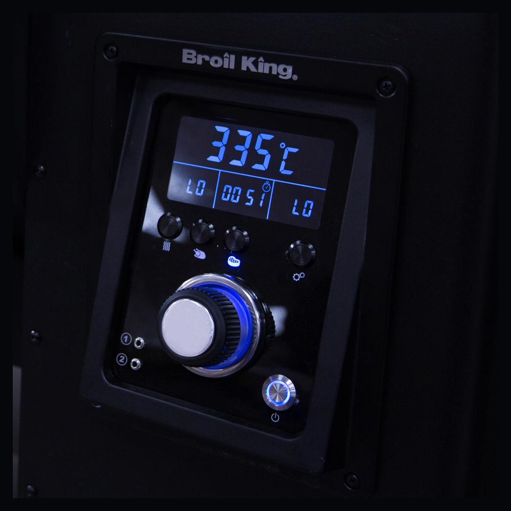 4-tlg. Flav-R-Cast matt-emaillierte Gussroste, Grillfläche 64 x 48,5 cm, Emaillierter Ablagerost 62 x 21 cm, Doppelwandiger Deckel mit Dichtungsband, Massive Grillkammer aus 2 mm pulverbeschichtetem Stahl, Pelletkammer mit 9 kg Fassungsvermögen. Großes, digitales Bedienelement, Kurzwahltasten für Smoke, Roast und Grill, Temperaturbereich von 82-316° C frei wählbar, Präzise Steuerung in 5° C und 1° C Schritten, WIFI und Bluethooth Steuerung mit der Broil King App möglich (erhältlich für iOS und Android), Separat entnehmbarer Aschefang für die einfache Reinigung, Abnehmbare Edelstahlseitenablage, Edelstahl Deckelgriff, Zusätzlicher Regalboden. Zwei Räder, zwei höhenverstellbare Standfüße, Inkl. 2 Temperaturfühler, Inkl. Drehspießset und Elektromotor