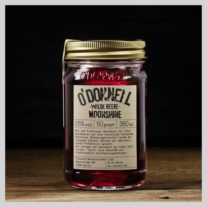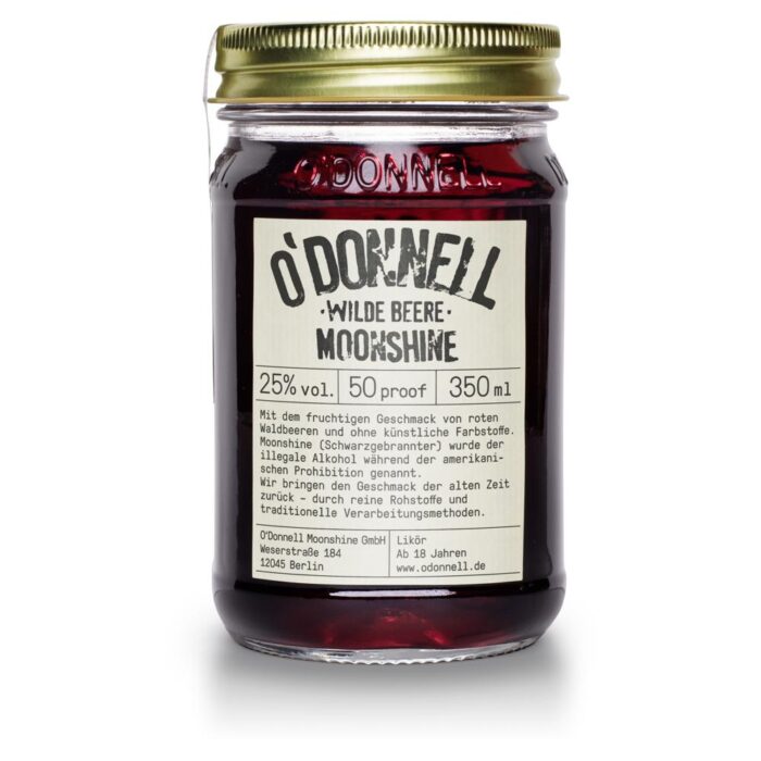 Die Wilde Beere“ – der fruchtige Beerenlikör von O’Donnell Moonshine! – natürlich-süßer Geschmack – Himbeeren, Trauben und Brombeeren – Beerenlikör mit 25% vol. – ohne künstliche Aromen oder Farbstoffe Der Beerenlikör schmeckt nach Sommer und ist absolut erfrischend! Hier vereinen sich die fruchtigen Aromen von Himbeere, Traube und Brombeere zu einem ganz besonderen Geschmackserlebnis. Wie frisch gepflückte Beeren aus dem eigenen Garten. Abgefüllt wird der „Wilde Beere“ Moonshine in originalen Mason Jars, ganz im Sinne der Tradition der Gangster während der amerikanischen Prohibition! Egal, ob die „Wilde Beere“ als Cocktail oder pur, sie ist immer ein Genuss. „