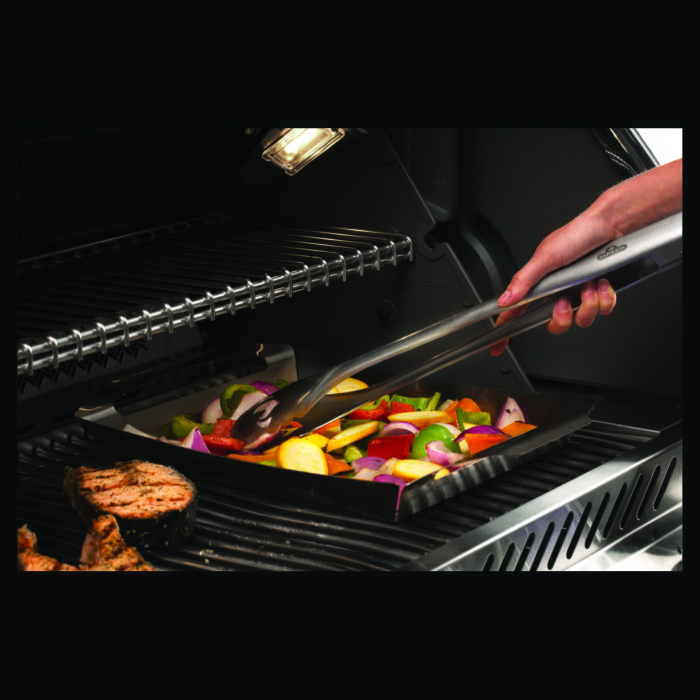 Zange und Pfannenwender aus 100% Edelstahl. Pfannenwender hat übergroße Hacken zum Aufhängen. Extra langer Spachtel ideal für Steaks undandere große Lebensmittel. Pfannenwender mit Wellenschliff und scharfer Kante