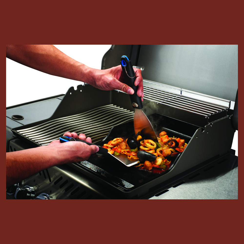 Die Ergonomischen Spartulas aus hochwertigem Edelstahl sind ideal für ein einfaches und sauberes Arbeiten auf den Napoleon Planchas und Gussplatten.