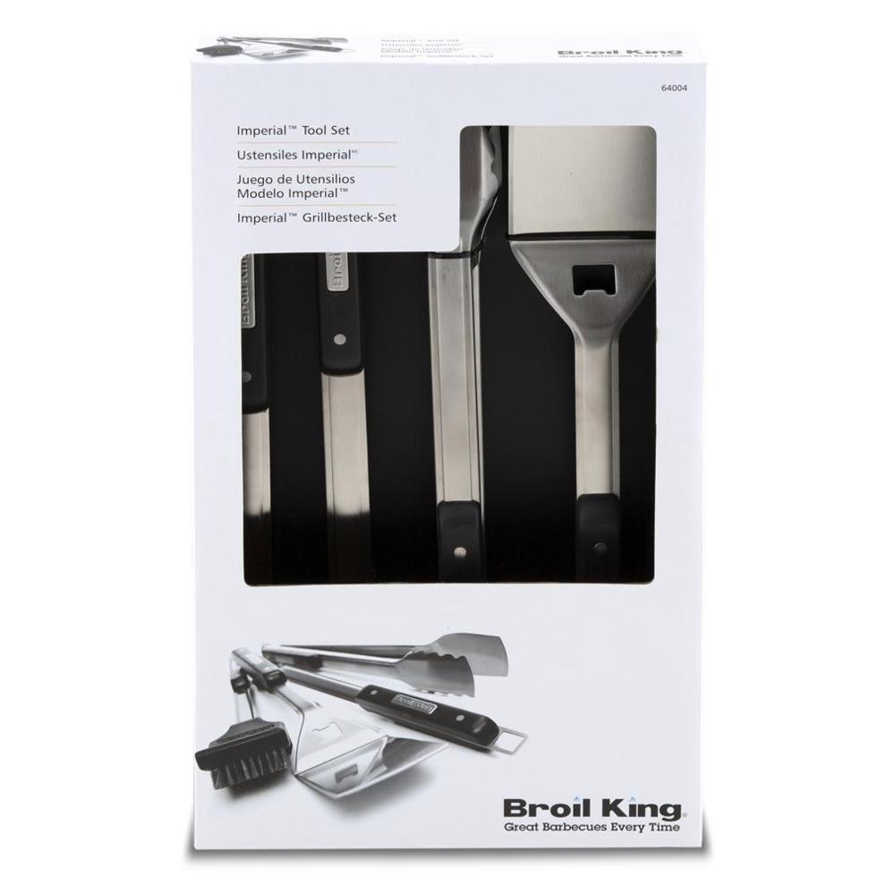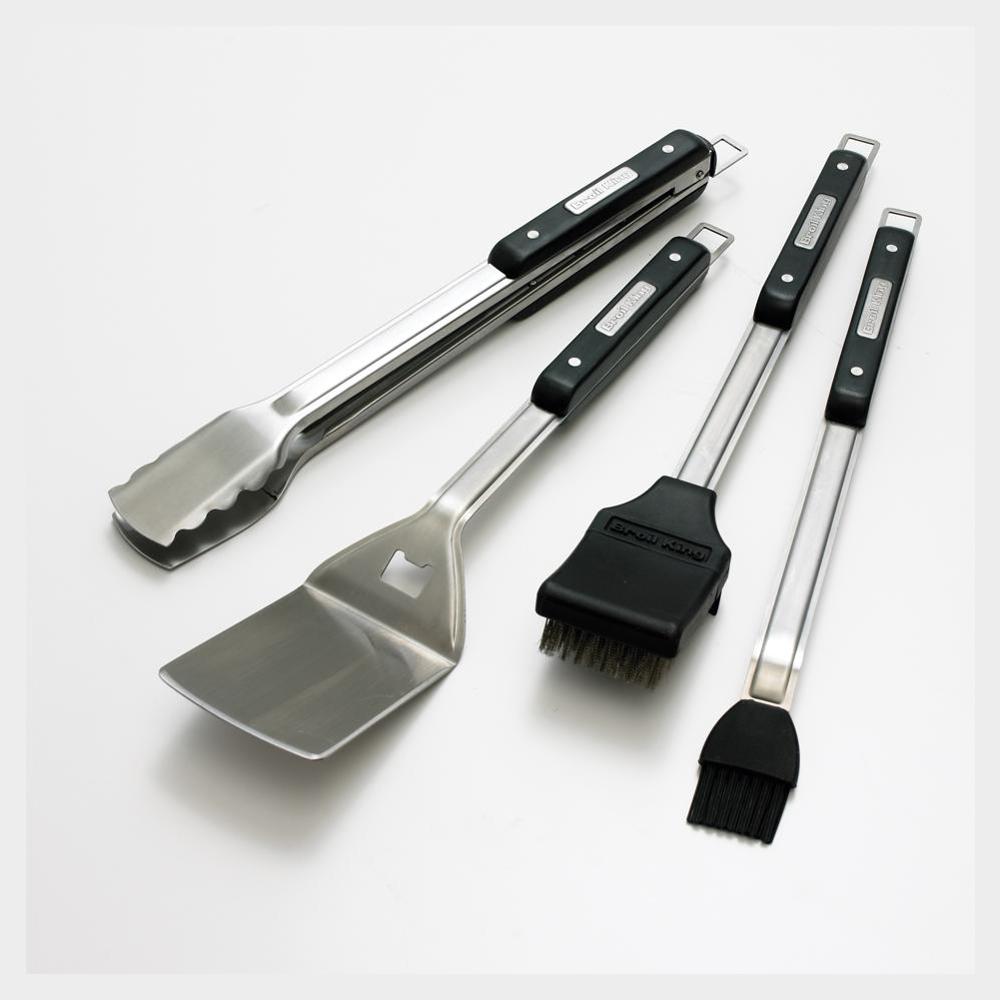 Das professionelle 4-tlg. Grillbesteck bietet ein sehr lang-lebiges Design selbst für den anspruchsvollen Griller. Große massive Kunststoffgriffe mit Edelstahleinlage, gefertigt aus 1,8 mm dickem Edelstahl. Die ideale Mischung aus Funktionalität und Haltbarkeit. Das Set besteht aus einem Wender, einer verschließbaren Grillzange, einem Silikonpinsel und einer Reinigungsbürste mit wechselbaren Bürstenköpfen.