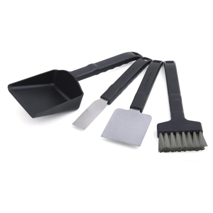 Alles was Sie benötigen, um Ihren Pelletsmoker sauber zu halten. Dieses Reinigungskit beinhaltet eine Kehrschaufel, eine Bürste und zwei massive Edelstahlschaber (schmal und breit). Verwenden Sie die Bürste und die Kehrschaufel für eine bequeme Reinigung. Die beiden Spachtel ermöglichen Ihnen das leichte Entfernen von eingebrannten Rückständen in Ihrem Grillgehäuse. Alle vier Werkzeuge haben geprägte Kunststoffgriffe mit Broil King Logo.