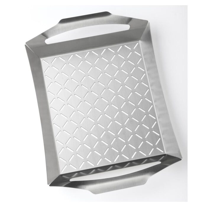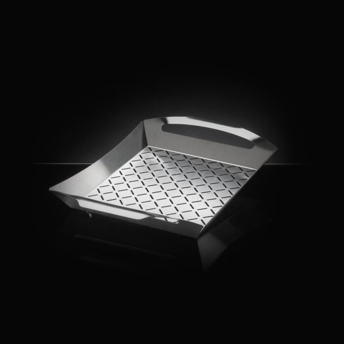 42 cm x 30 cm großer Napoleon PRO Gemüsekorb aus Edelstahl mit perforierter Unterseite zum optimalen Grillen von knackigem Gemüse, mit seitlichen Griffen.