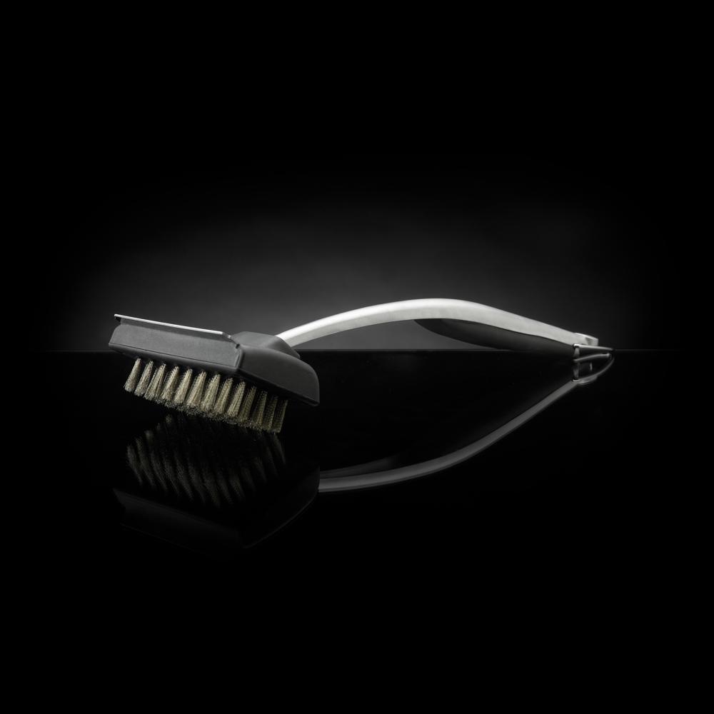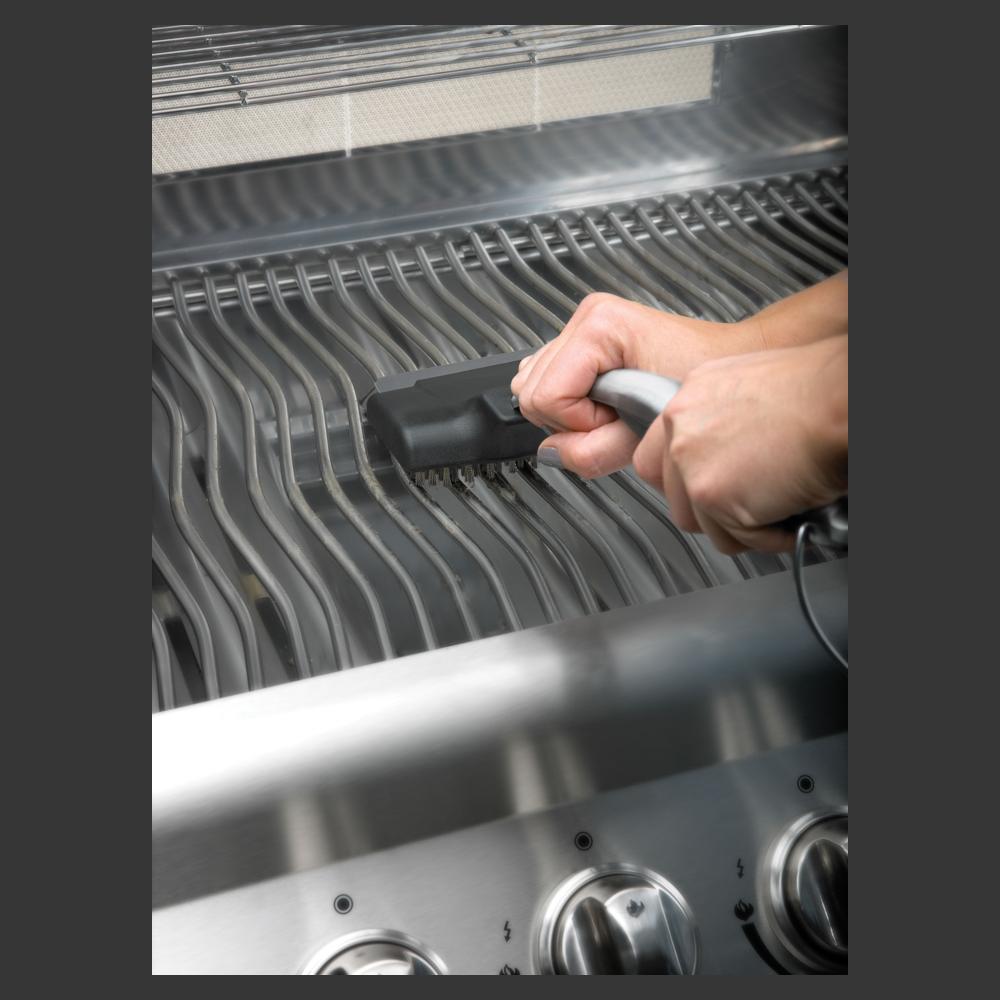 PRO Edelstahl Grillbürste von Napoleon für gründliche Reinigung und lange Haltbarkeit mit Schaber und Flaschenöffner.