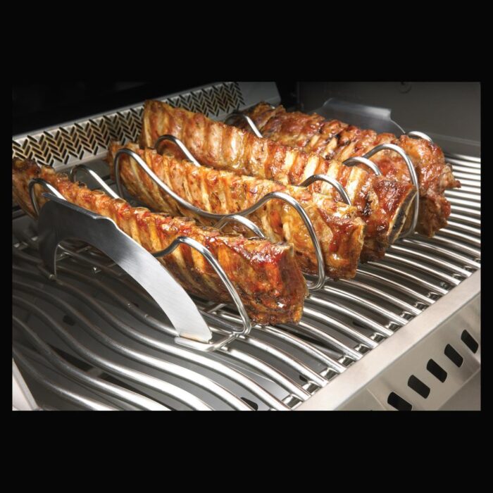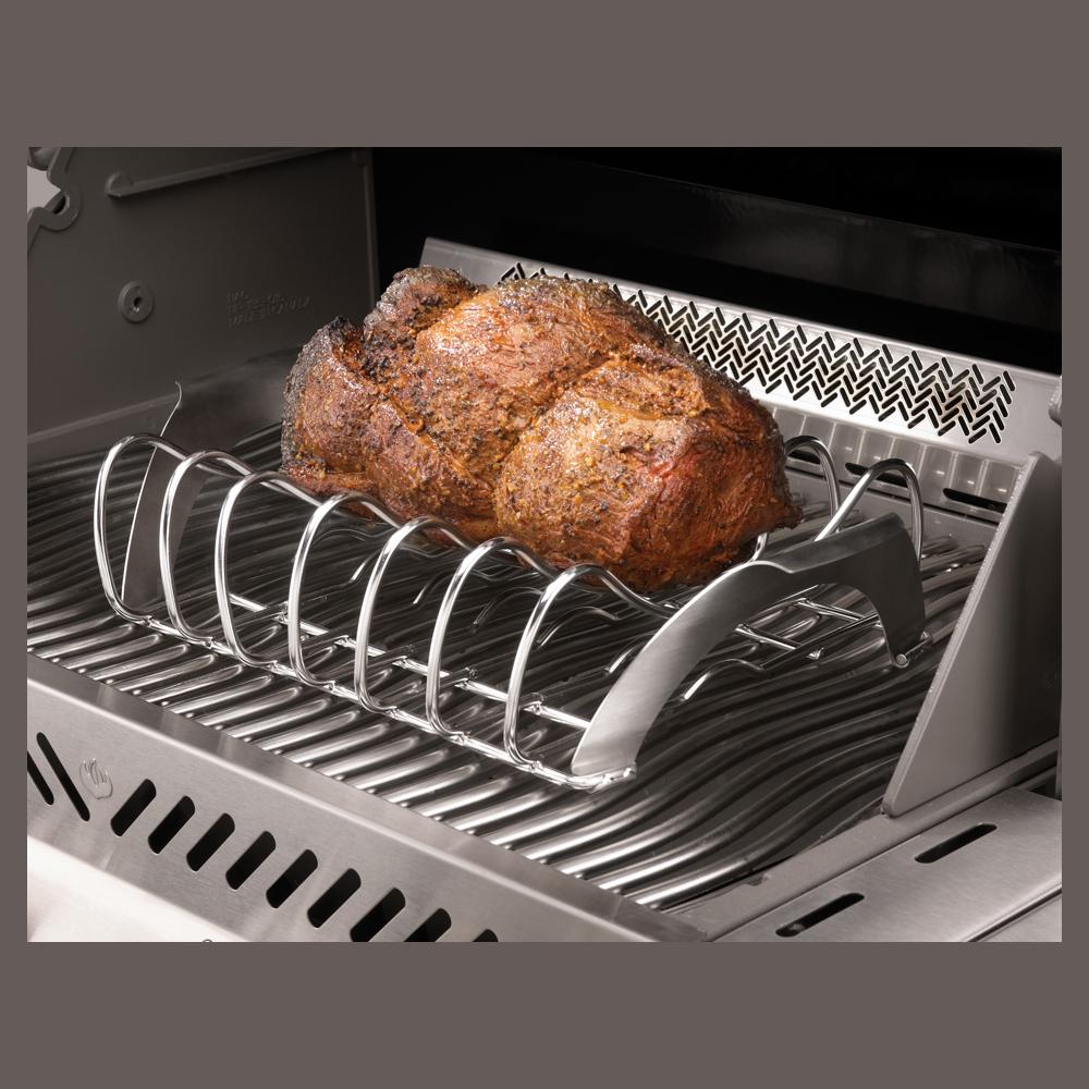 Napoleon PRO Spare Rib und Bratenhalter mit seitlichen Griffen und massiven Edelstahl Spangen.