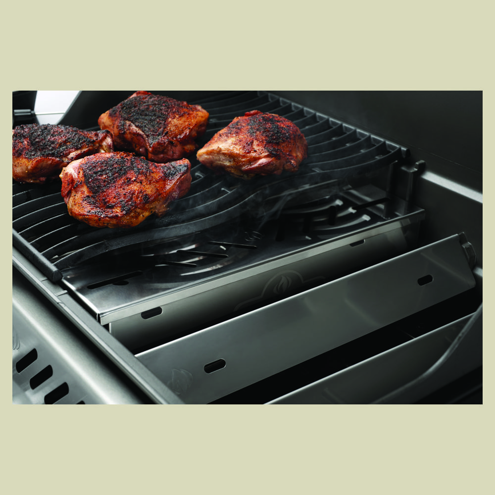Große Smoker-Box aus Edelstahl zum ersetzten des Flammenbleches. Erleben Sie einen Intensiven Rauchgeschmack auf Ihrem Gasgrill.Kompatibel mit Prestige Pro-, Prestige und Rogue Grills.